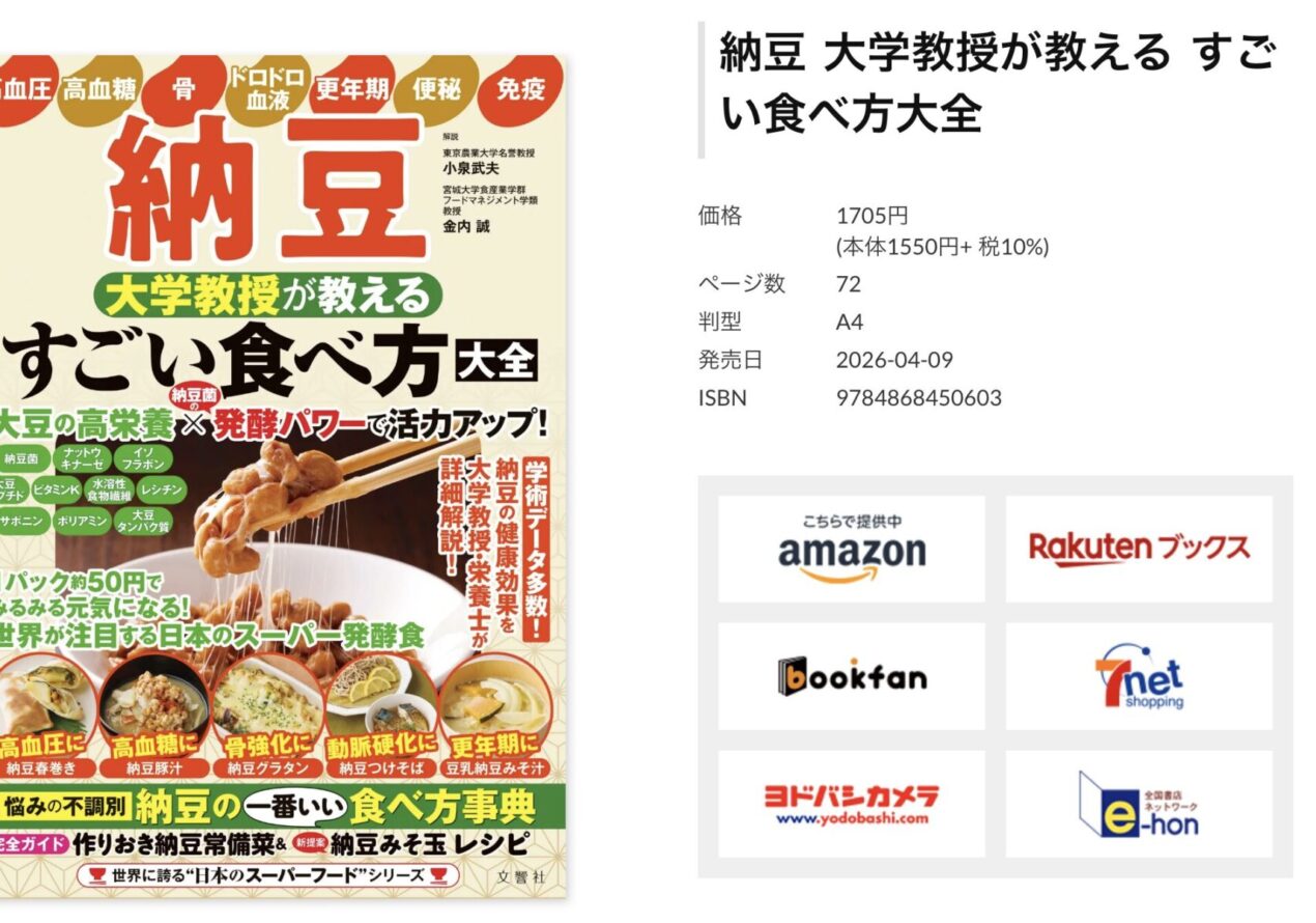 お知らせ 【書籍監修】 文響社さま「納豆 大学教授が教える すごい食べ方大全」栄養・レシピ監修いたしました