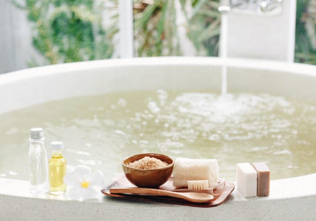 外側からのケアでは、「入浴」と「腹巻き」が心強い味方になります。 お風呂は、38〜40度くらいの「少しぬるい」と感じる温度がベスト。10〜30分じっくり浸かることで、体の芯まで熱が伝わり、腸の筋肉がリラックスしてほぐれていきます。