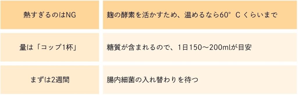 最後に甘酒の「3つのゴールデンルール」をお伝えします。これを守って、甘酒の効果を最大限に引き出してください。